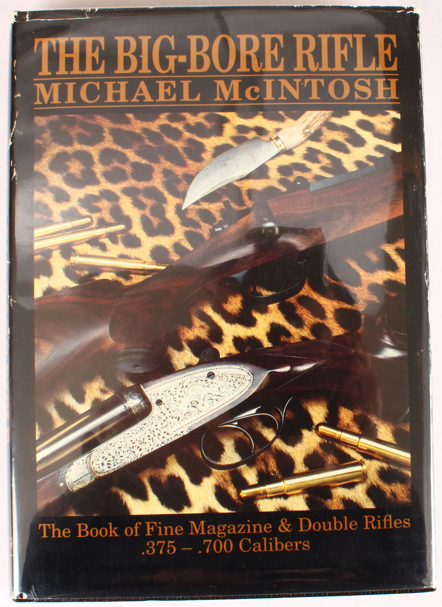 The Big-Bore Rifle: The Book of Fine Magazine and Double Rifles, .375-.700 Calibers by Michael Mcintosh 1990, 7'' x 10''. 224 pages, pages clean, binding tight, hardcover and dustjacket excellent, colored and b/w images. Value: $200 Grade: Excellent + - Value: 2 to 200