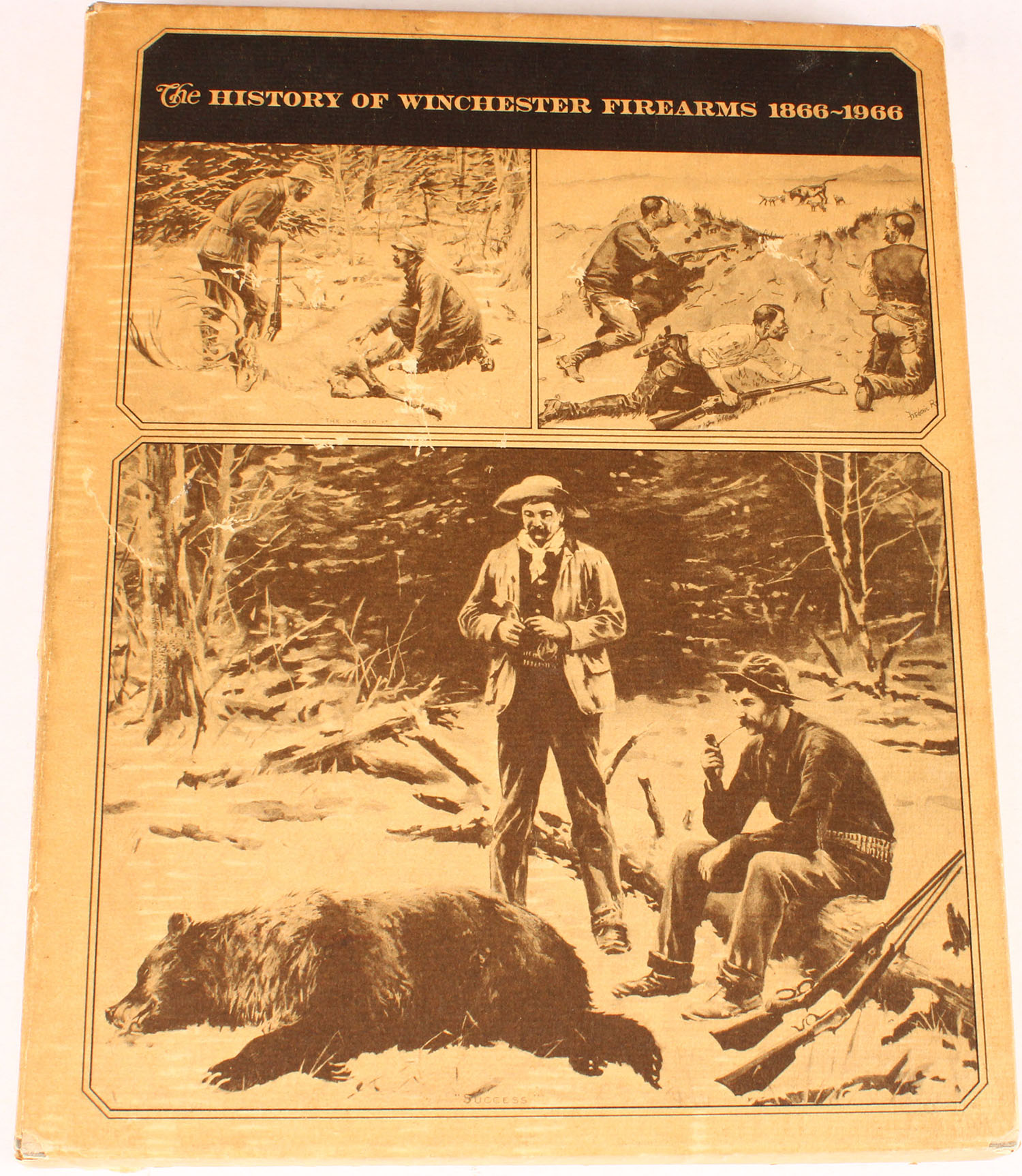The History of Winchester Firearms from 1866-1966 third edition by George W. Watrous 1966, 8'' x 11''. 159 pages, comes in hardcover sleeve, sleeve is slightly coming undone on the side, pages clean, binding tight, hardcover mint. Value: $80 Grade: Excellent + - Value: 4 to 80