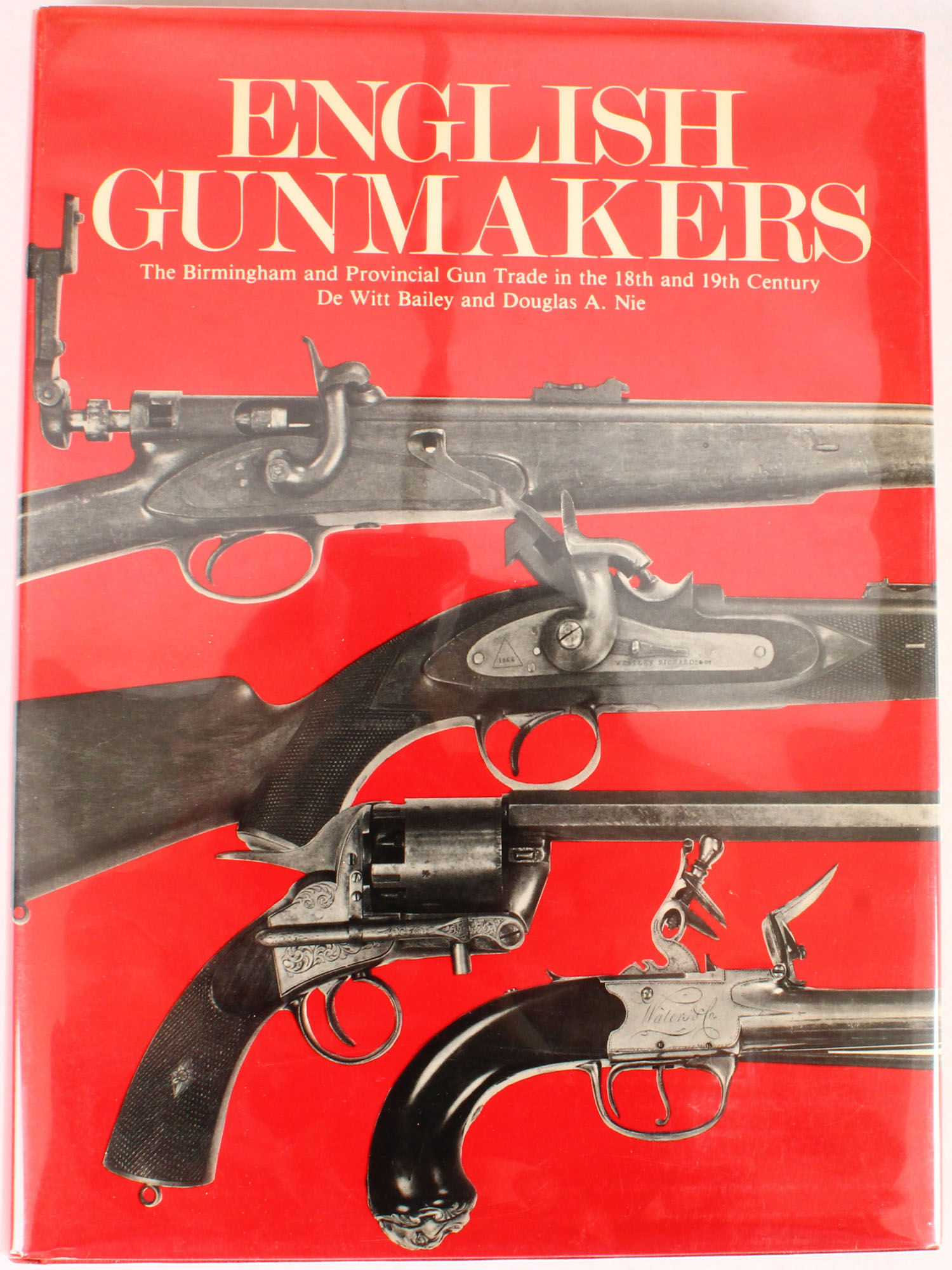 English Gunmakers: The Birmingham and Provincial Gun Trade in the 18th and 19th Century by De Witt Bailey and Douglas A. Nie 1978, 7 1/2'' x 10''. 127 pages, pages clean, binding tight, hardcover and dustjacket mint. Value: $ 100 Grade: MINT + - Value: 40 to 100