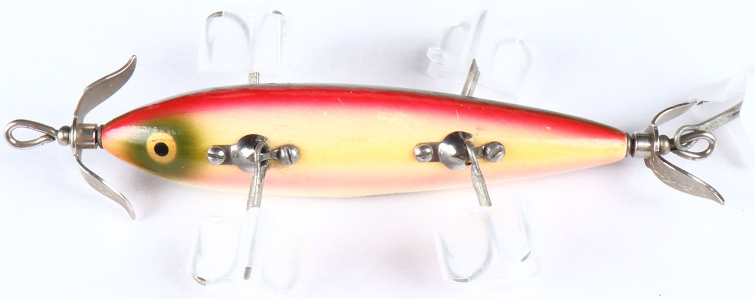 Heddon Dowagiac 150, 5 Hook Minnow, Rare Rainbow finish, GE, has very little if any wear to paint, blades are marked. Grade: Excellent ++ - Value: 100 to 500