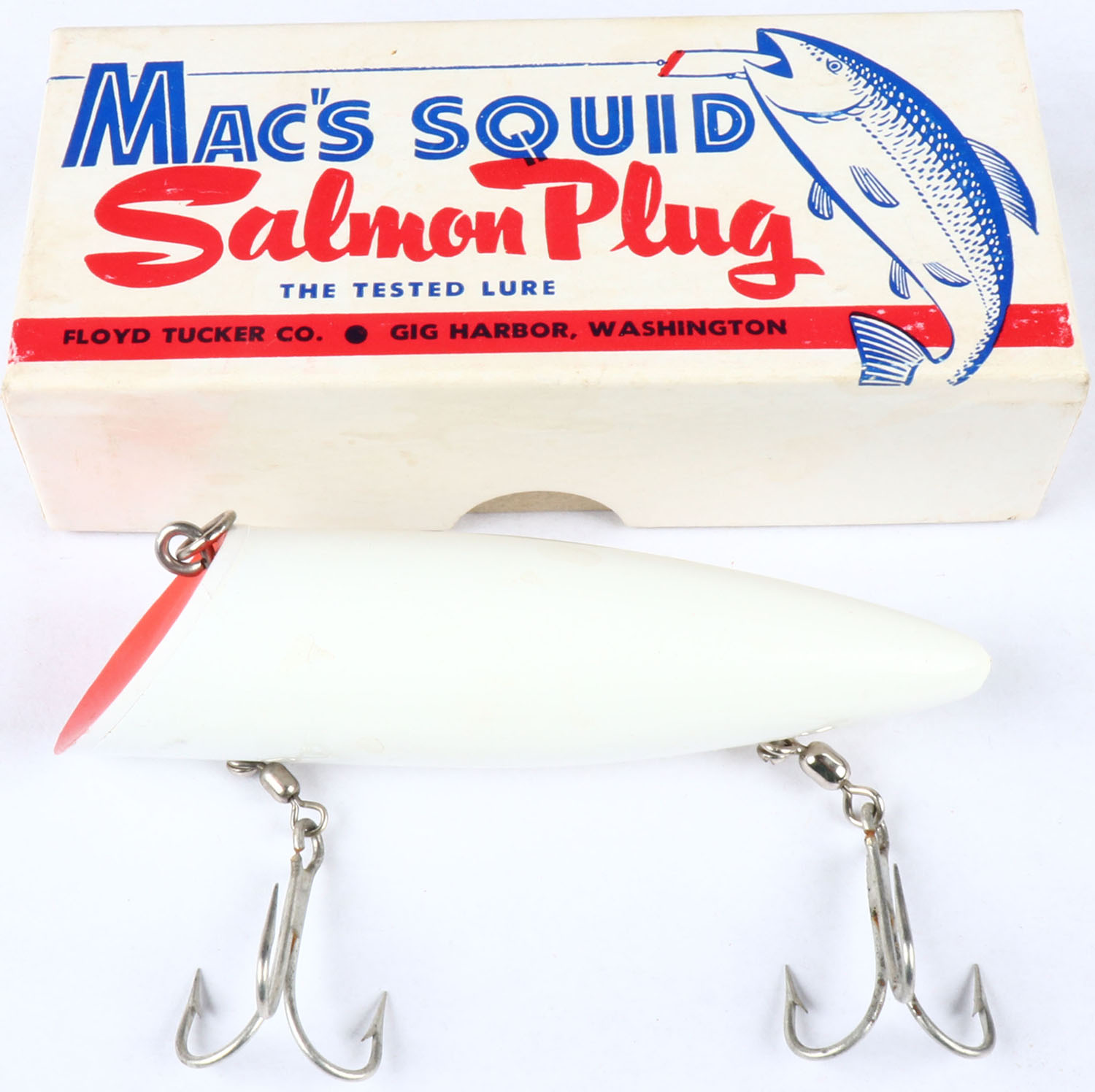 | Mac's Squid Salmon Plug in original box, 4''. Grade: Excellen...