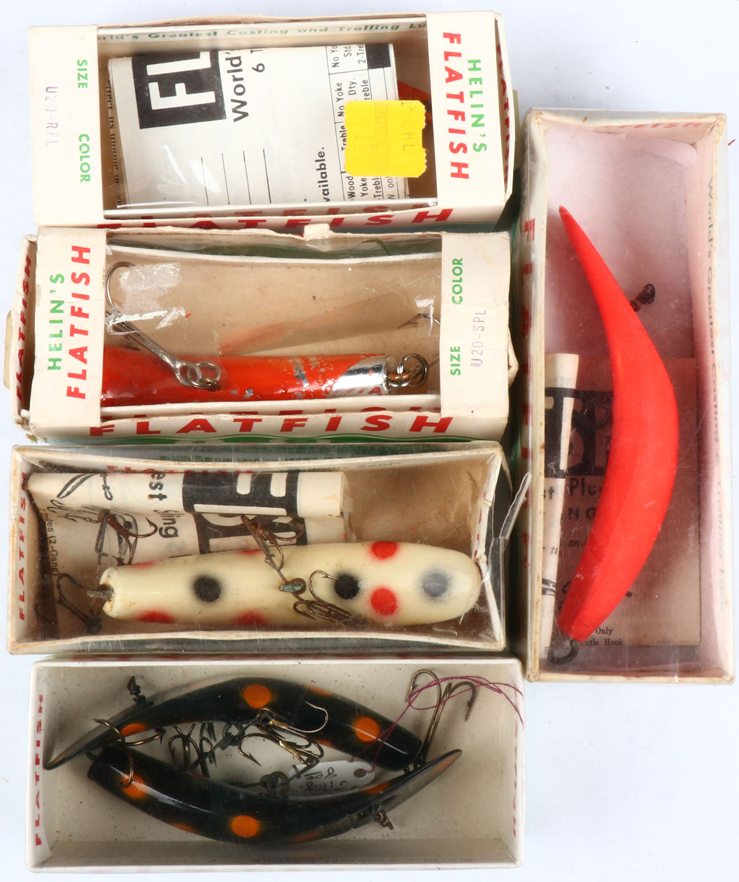 Lot of 5 Flat Fish lures in the boxes. Grade: MINT - Value: 10 to 40