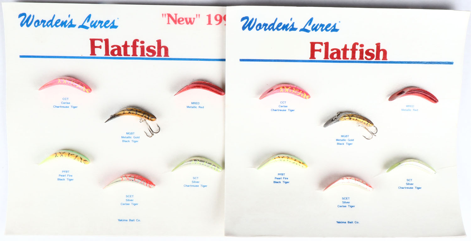 | Lot of 2 Worden's Lures Flatfish lures on card, 10'' x 10 1/2...
