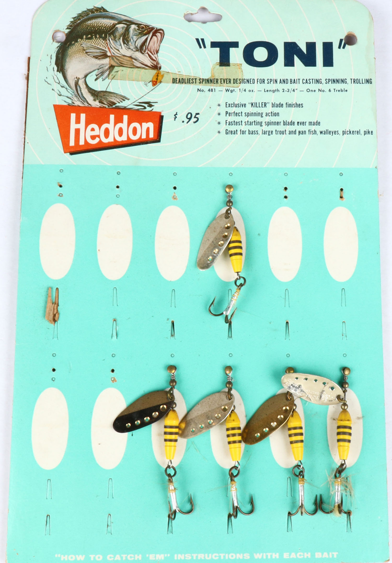 | Heddon TONI spinners on card, five left on card. Grade: Excelle...