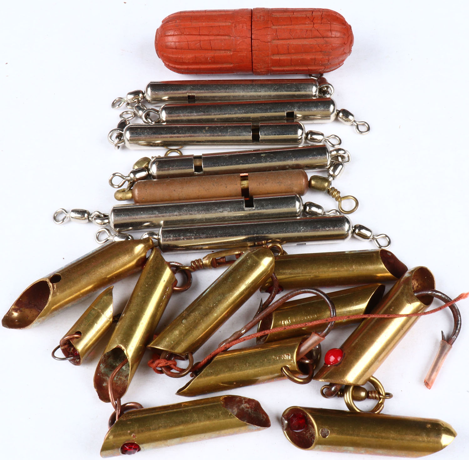 Lot of salmon lures, (7) line snubbers & snake bite kit. Grade: Excellent - Value: 2 to 30