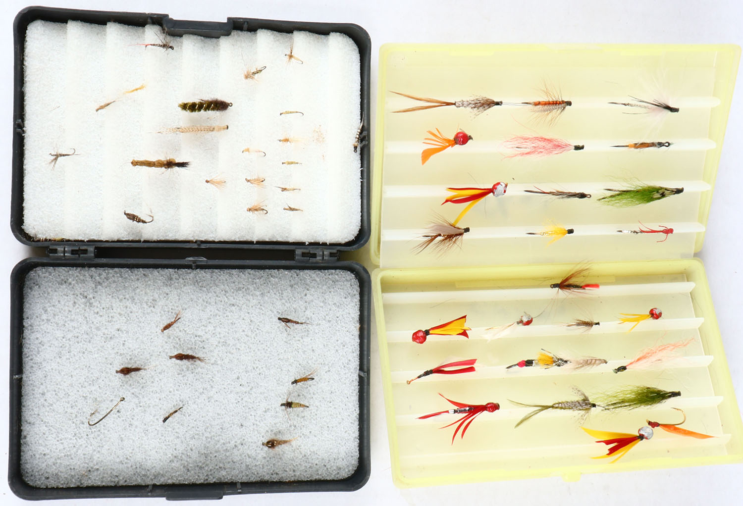 | Lot of 2 plastic fly boxes full of flies. Grade: Excellent - ...