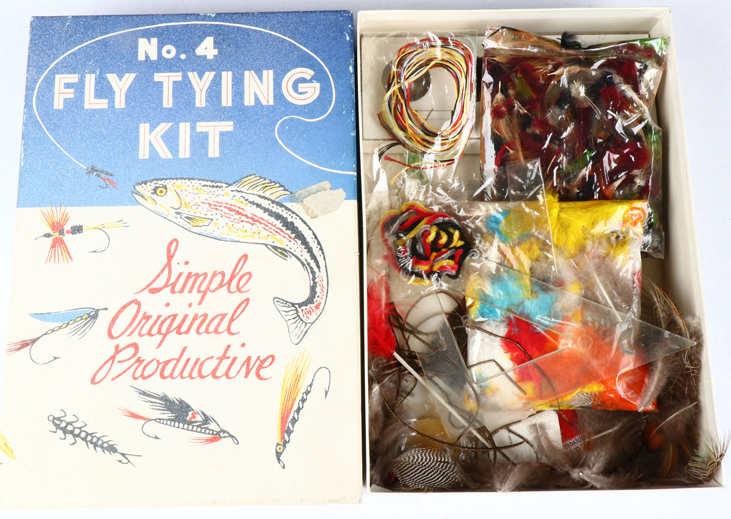 Universal Vise Co No. 4 Fly Tying Kit, full of feathers, yarn & thread, 8'' x 12'' x 2'' box size. Grade: Excellent - Value: 10 to 40