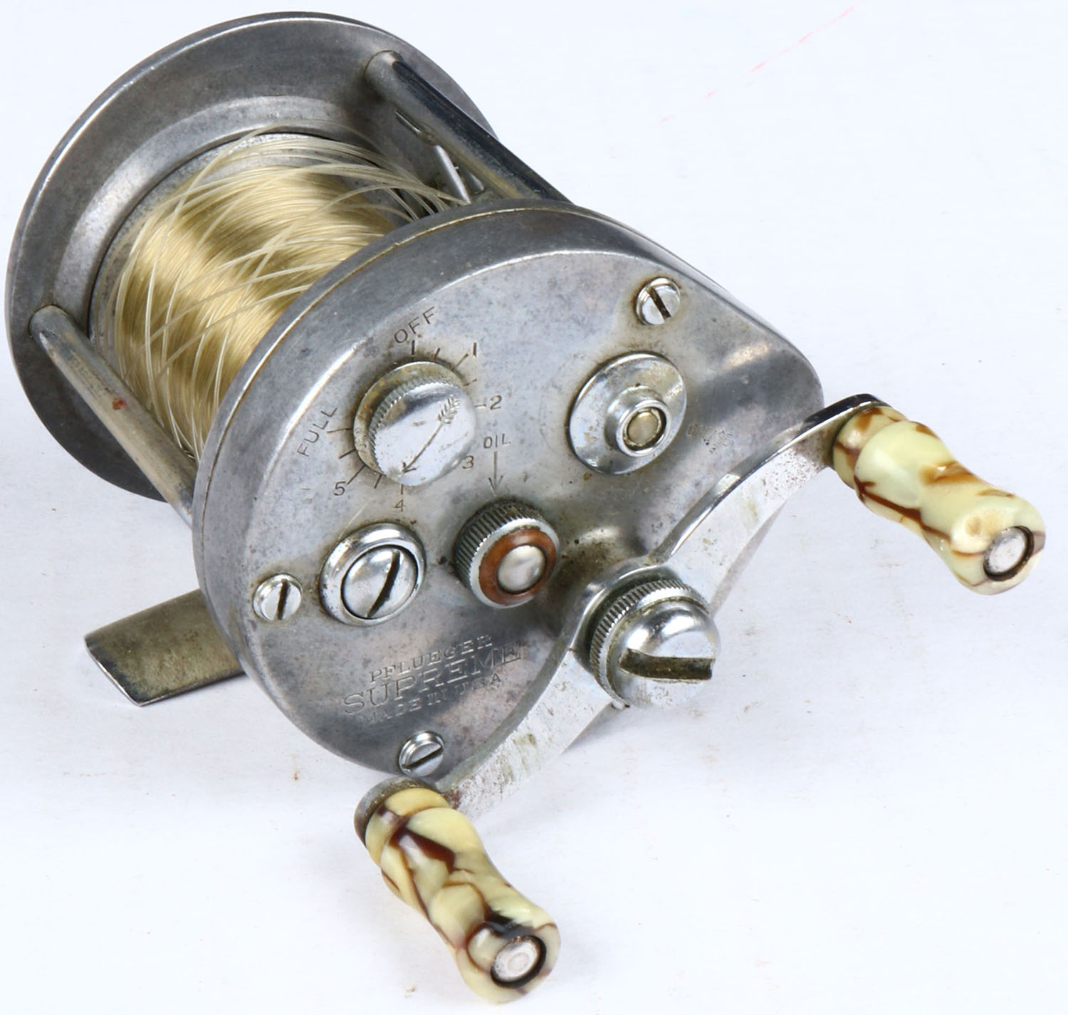 Pflueger Supreme casting reel, dual handle, strong click, spins very well. Grade: Excellent - Value: 10 to 30