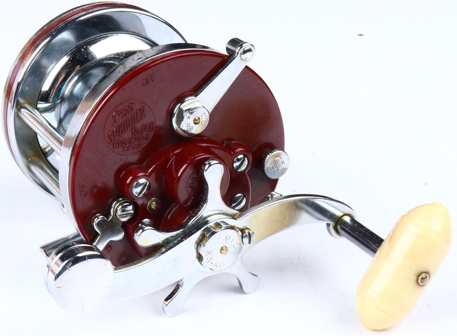 | Penn Squider No. 146 level wind reel, single white handles, near...