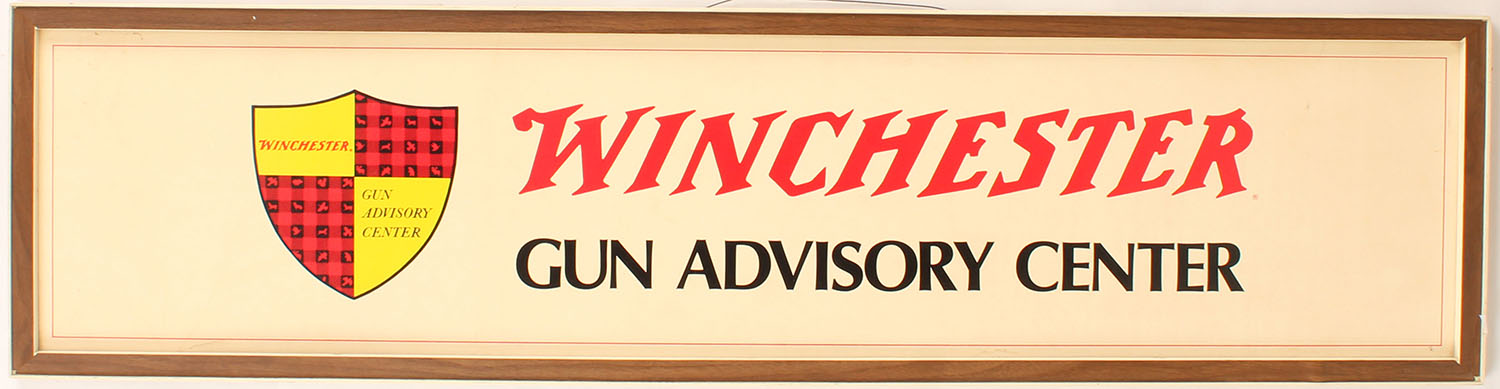 Winchester Gun Advisory Center sign, 42'' x 10 1/2'', wonderful condition. Grade: Excellent - Value: 40 to 200
