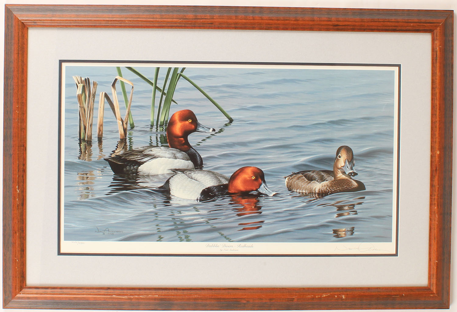 Dabblin' Divers - Redheads by Neal Anderson, wonderful colors, 24'' x 13'' image size, framed & matted, 4024/4300. Grade: MINT - Value: 20 to 200