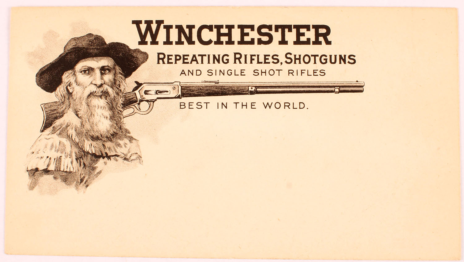 Winchester Repeating Rifles, Shot Guns Envelope, unused, sepia tone image of old Chin Whisker & a model 73. Grade: Excellent ++ - Value: 30 to 100