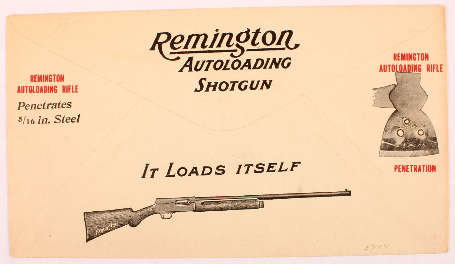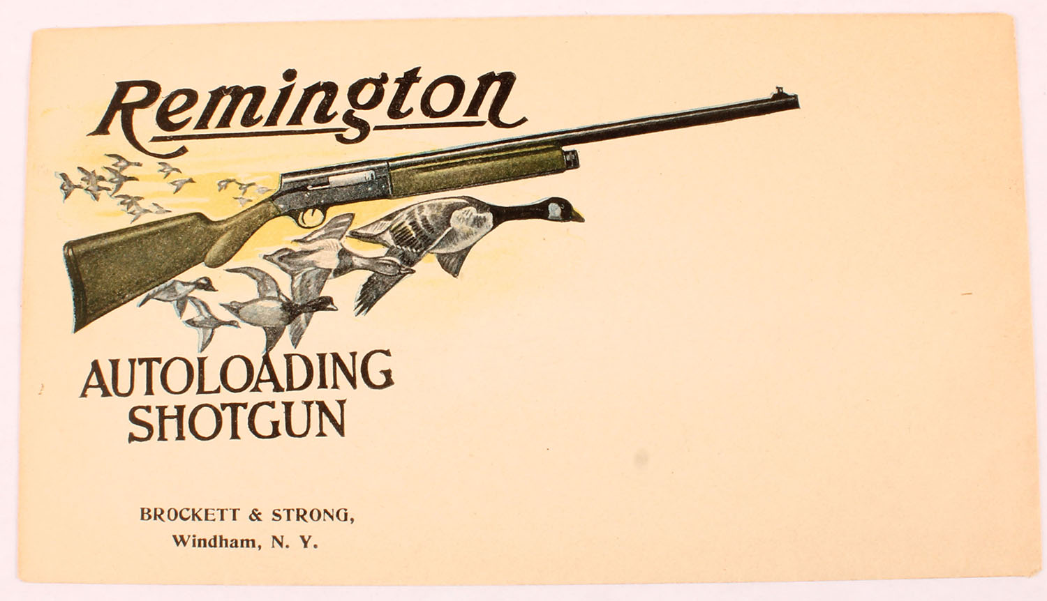 Remington Autoloading Shotgun Envelope pictures many bids in flight with auto shotgun, unused, has pictures on back. Grade: Excellent ++ - Value: 30 to 150