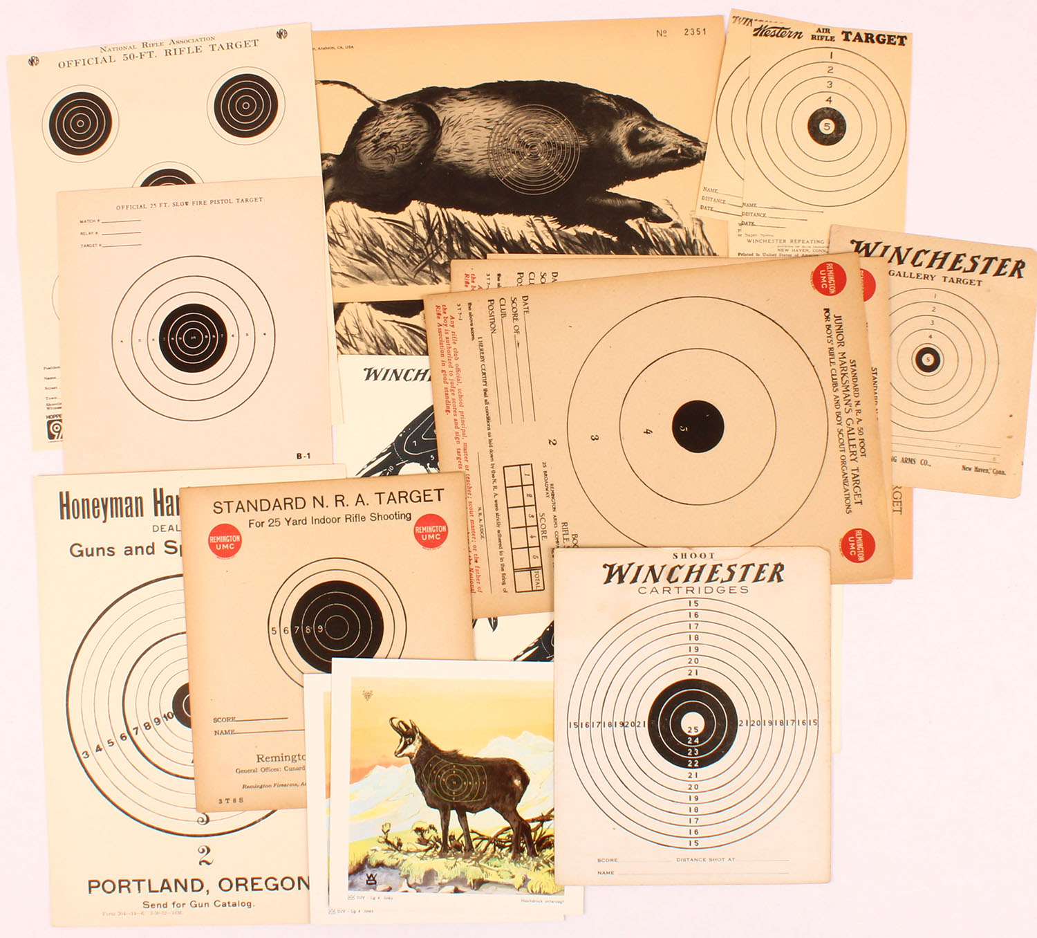 Large lot of targets with images of animals, 10'' x 6''. Grade: Excellent - Value: 2 to 30