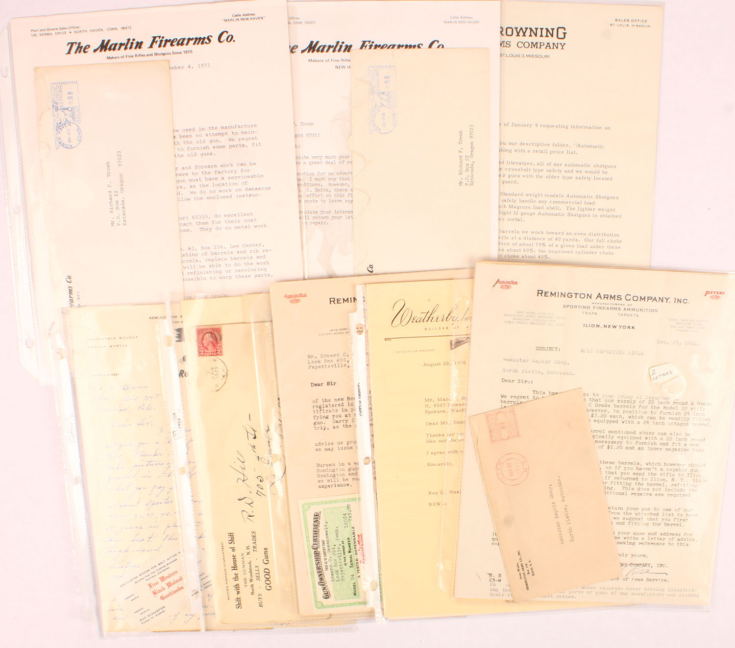 Large lot of misc. gun related envelopes & letters that were enclosed. Grade: Excellent - Value: 2 to 50