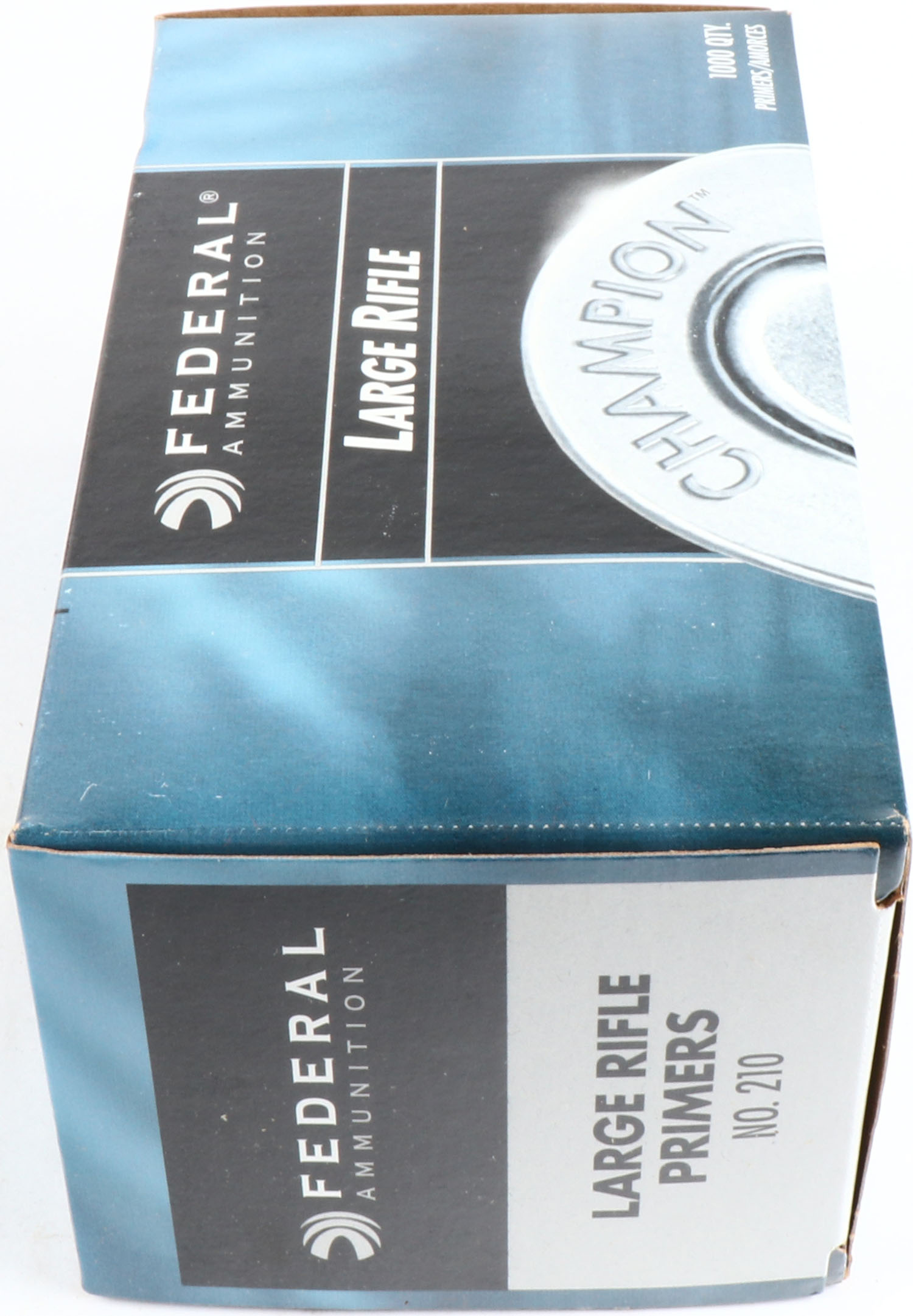 Federal primer brick, FULL, Large rifle primers, 1000 in the brick, all bright and clean. Grade: Excellent ++ - Value: 50 to 200