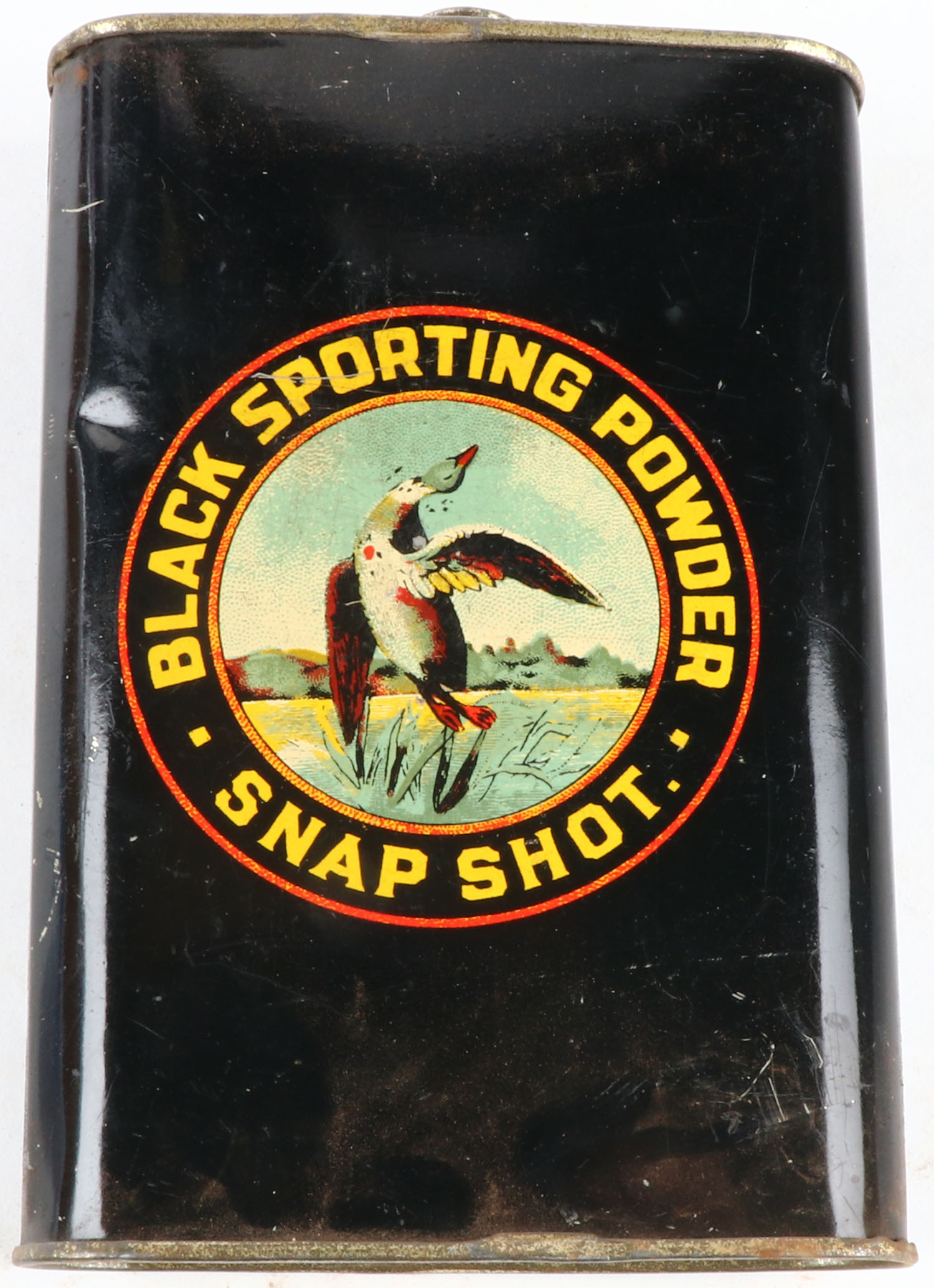 LARGE CIL Gunpowder tin, Black Sporting Powder, Snap Shot, empty, all solid. Grade: Very Good ++ - Value: 50 to 100