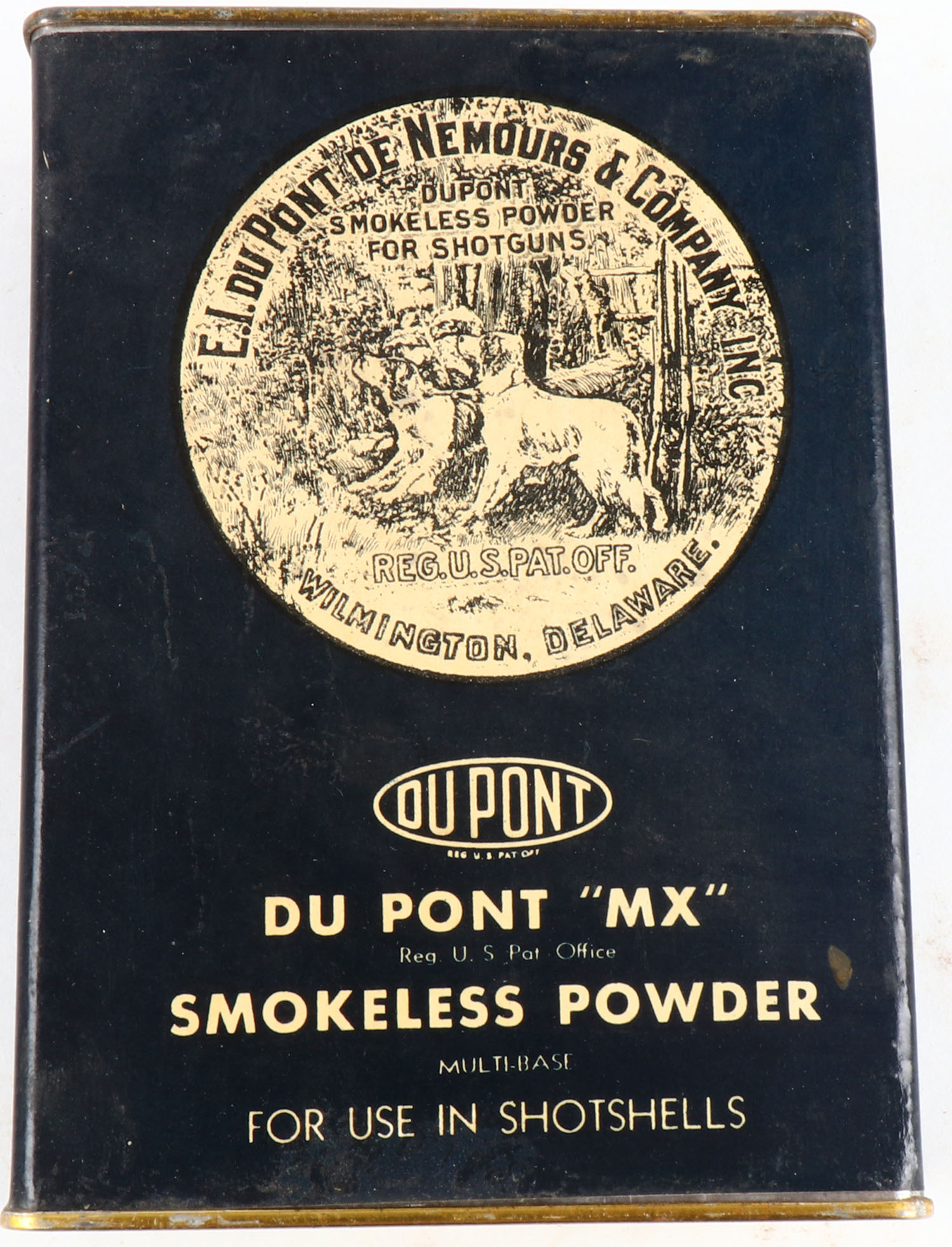 DuPont Gunpowder tin, smokeless Powder, Full, all solid. Grade: Very Good ++ - Value: 10 to 50