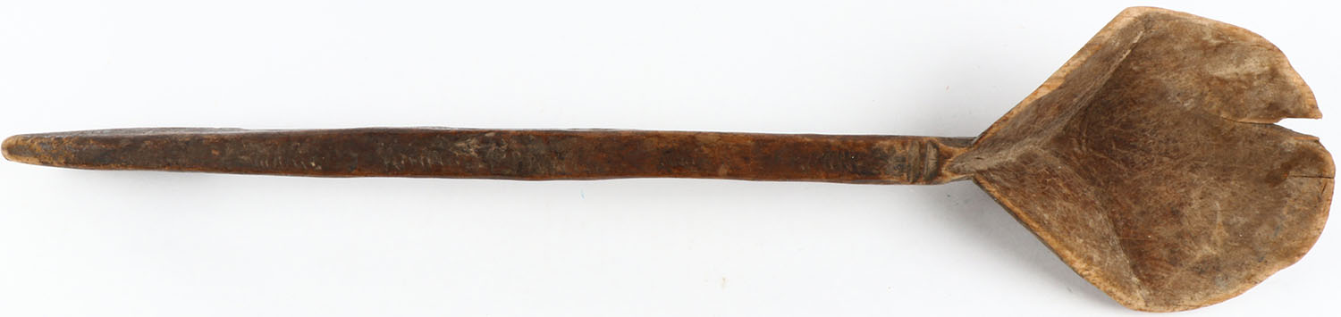 RARE carved 19th century Plains Native Americans wood spoon, 23 1/2'' OAL. Grade: Very Good - Value: 20 to 350