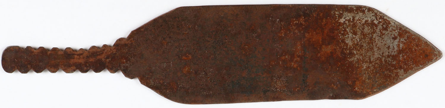 LARGE Metal trade spear point, dated 1870, 7 5/8'', OAL, has rust. Grade: Very Good - Value: 50 to 300