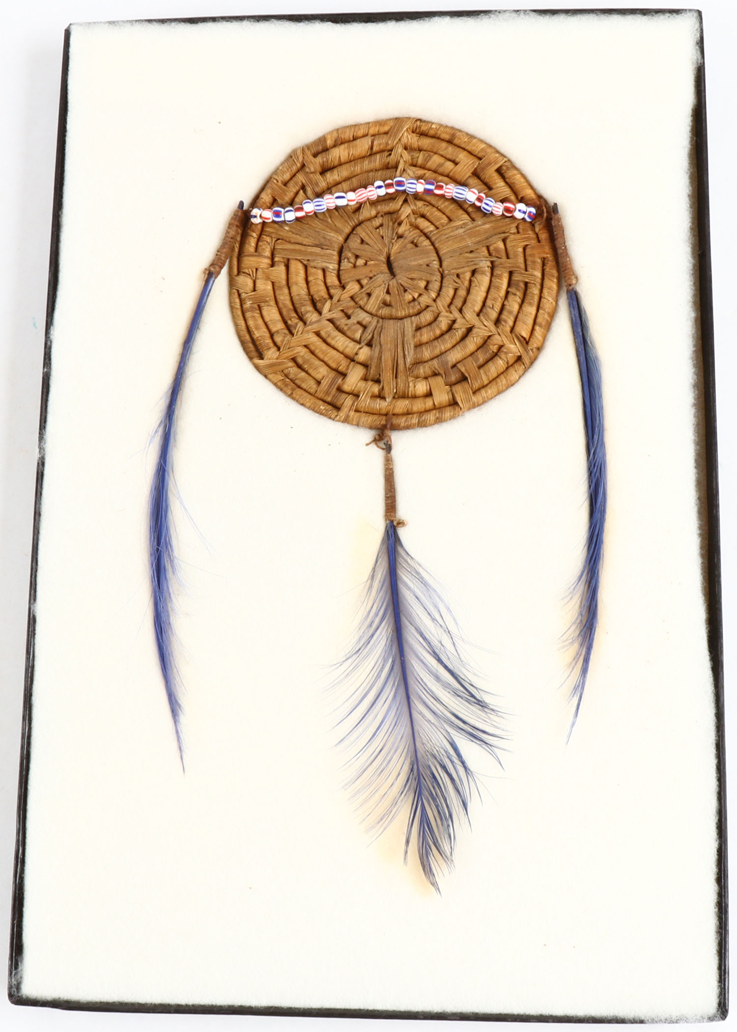 Dreamcatcher, small glass beads with feathers, 9'' tall. Grade: Very Good ++ - Value: 30 to 150
