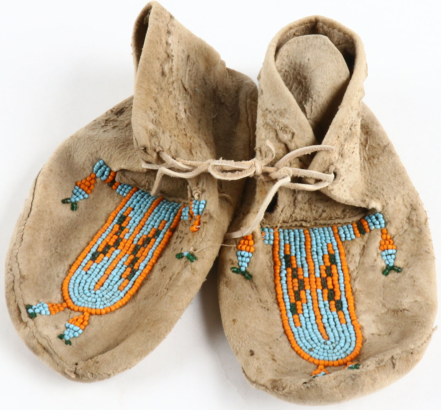 Native American child's moccasins. Grade: Very Good ++ - Value: 40 to 200