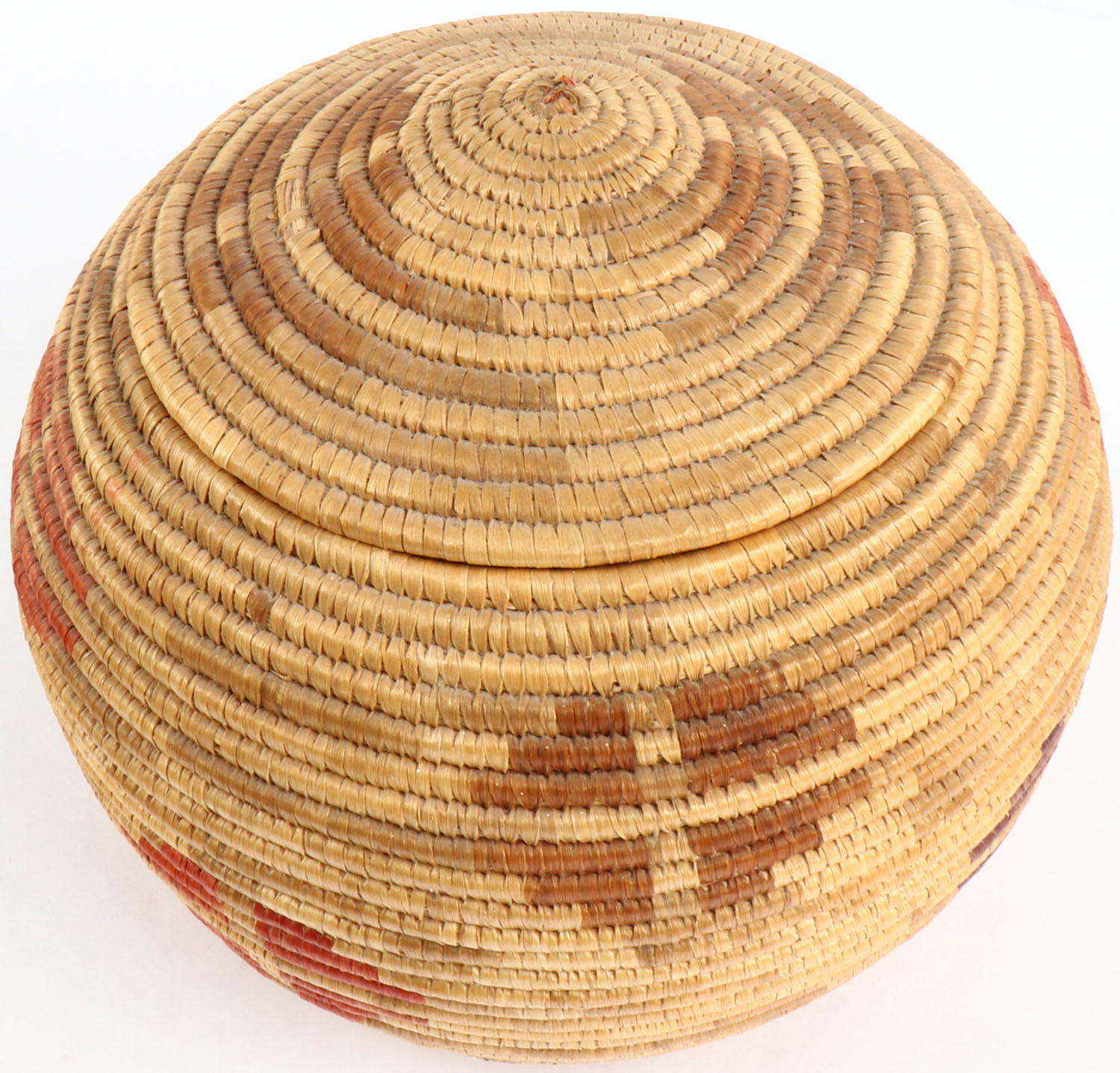 Antique Large Wicker basket with drum stick, 13'' wide basket. Grade: Excellent - Value: 10 to 100