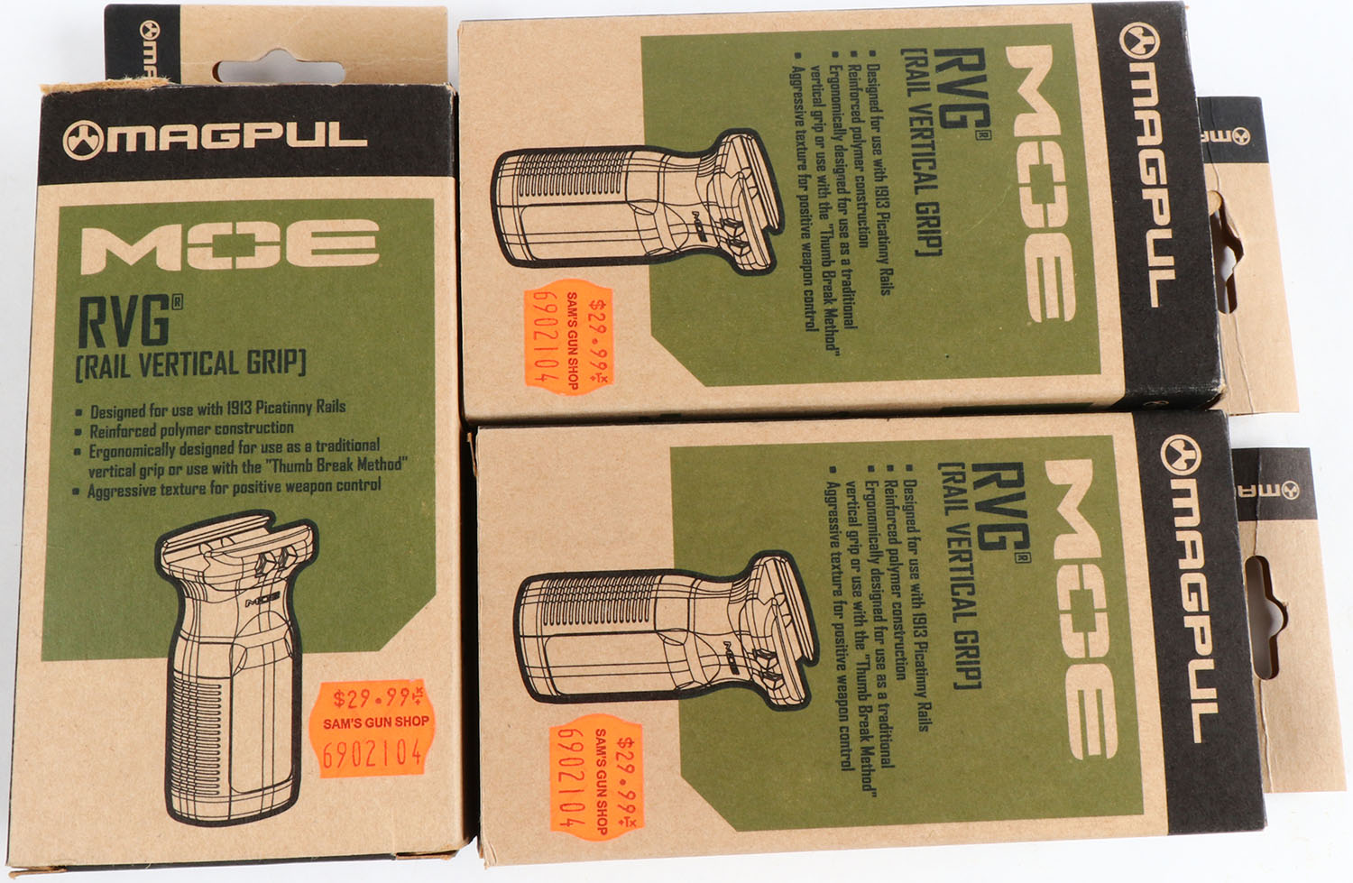 Lot of 3 Magpul MOE grips, in original boxes. Grade: Excellent - Value: 20 to 80
