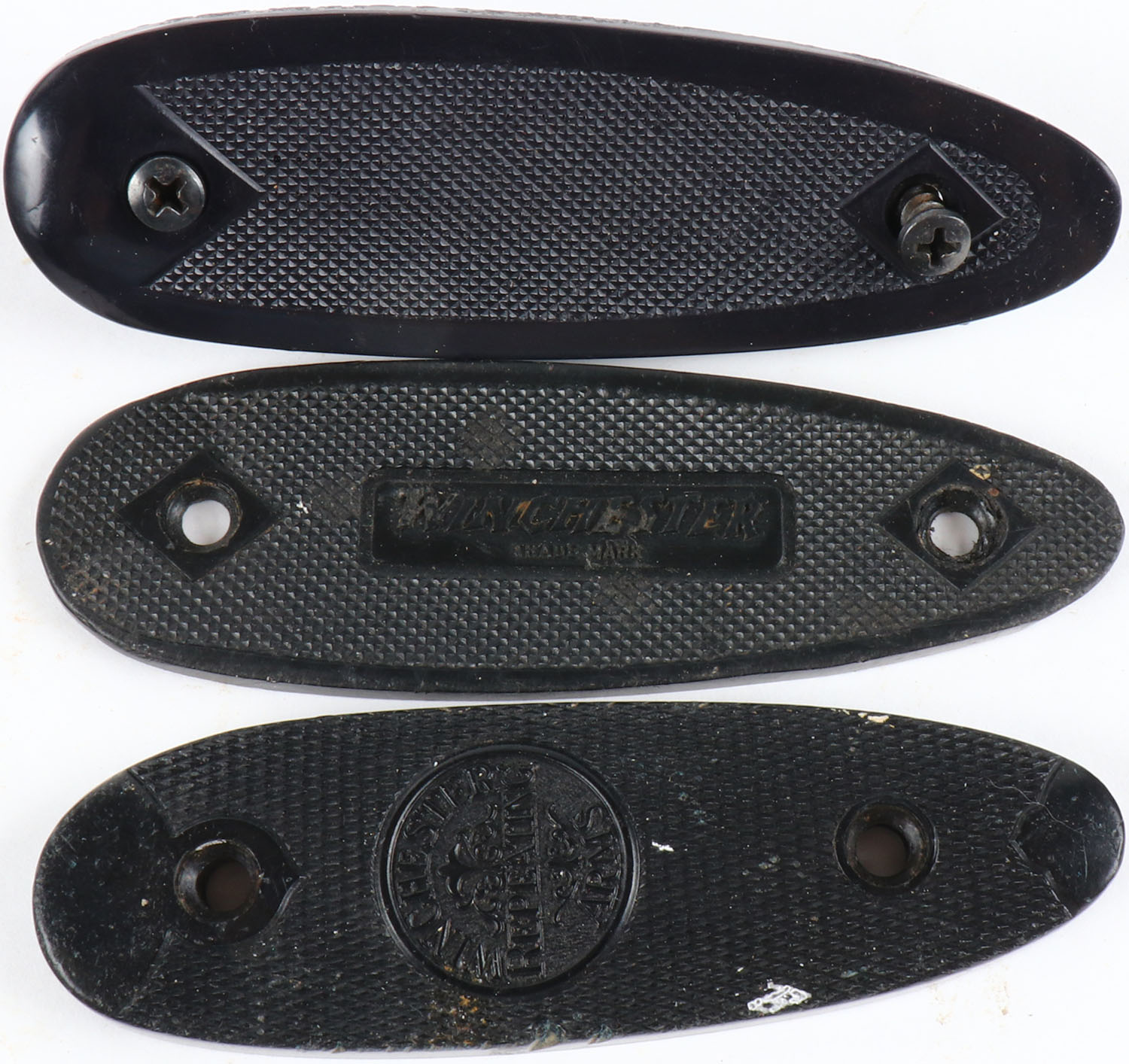 Lot of 3 butt plates, 2 Win and 1 unmarked. Grade: Excellent - Value: 4 to 40