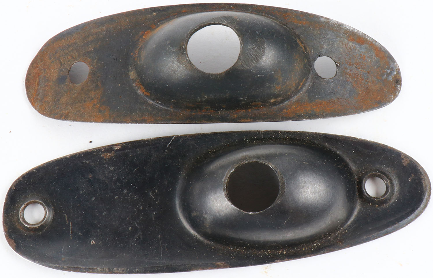 Lot of 2 metal buttplates with stock access portals, maybe Win. Grade: Very Good ++ - Value: 10 to 60