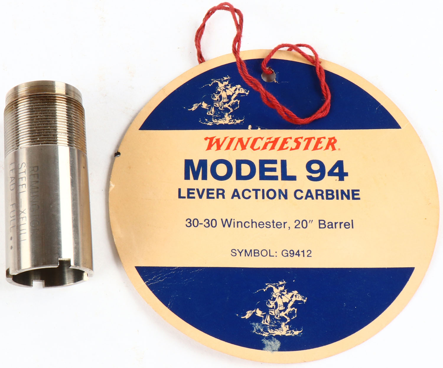 Lot of 2, Winchester hang tag, and Remington Steel-Xfull choke tube. Grade: Very Good ++ - Value: 6 to 60