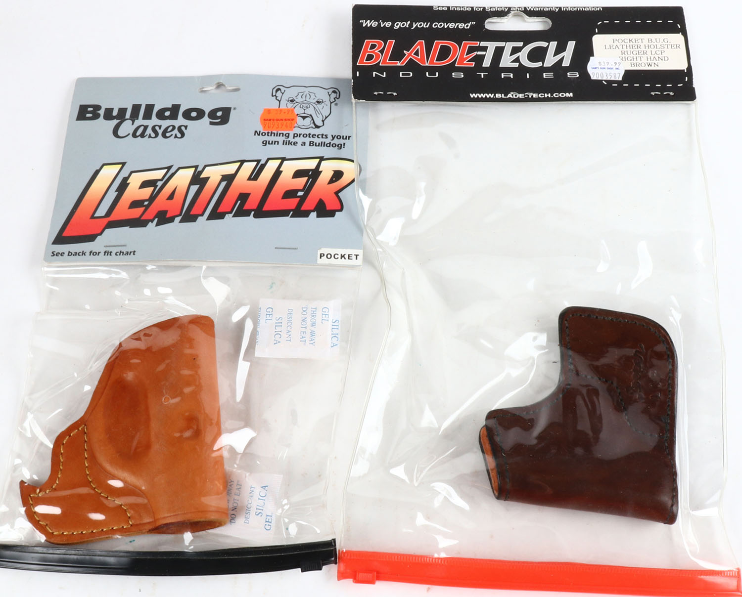Lot of 2 leather holsters for Ruger LCP & bulldog. Grade: Excellent - Value: 10 to 40