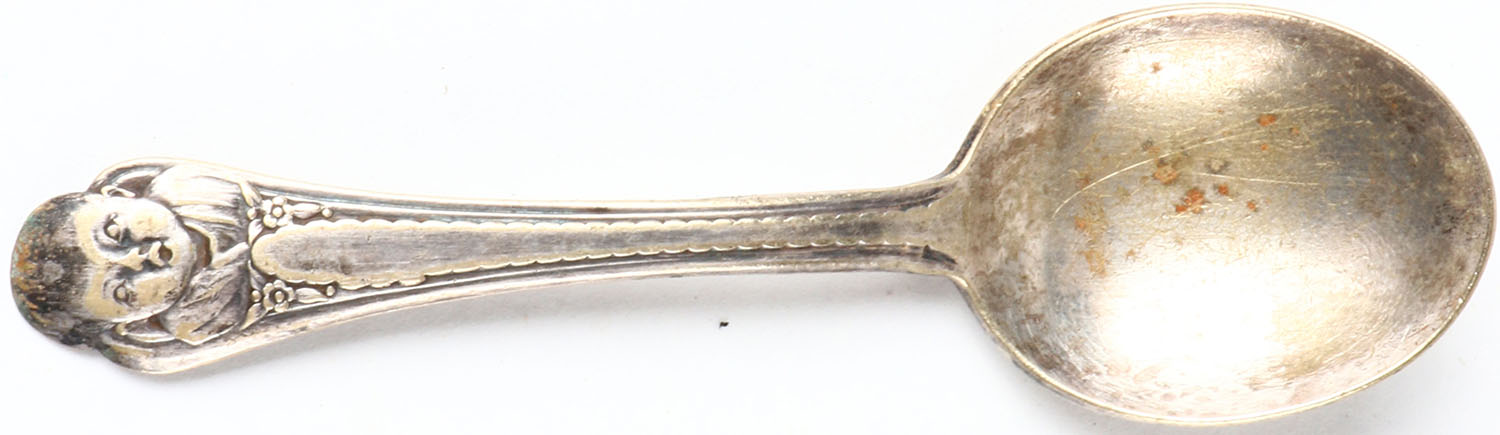 Gerber Baby spoon 4 1/4'' OAL, signed on back, circa 1930. Grade: Excellent - Value: 20 to 60