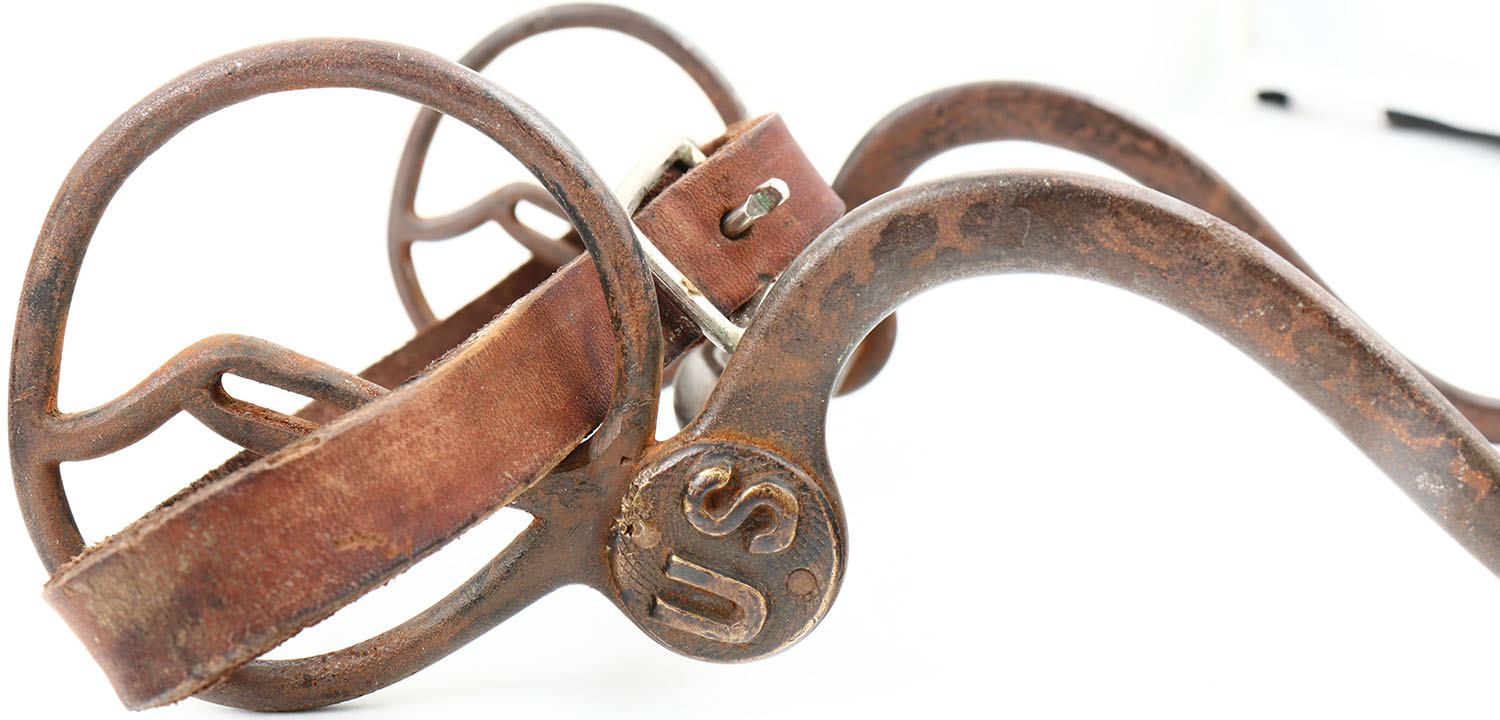 RARE 1874 US Cavalry Indian Wars Shoemaker horse bit, has the U.S. Rosettes on the cheek pieces. Grade: Very Good ++ - Value: 100 to 500