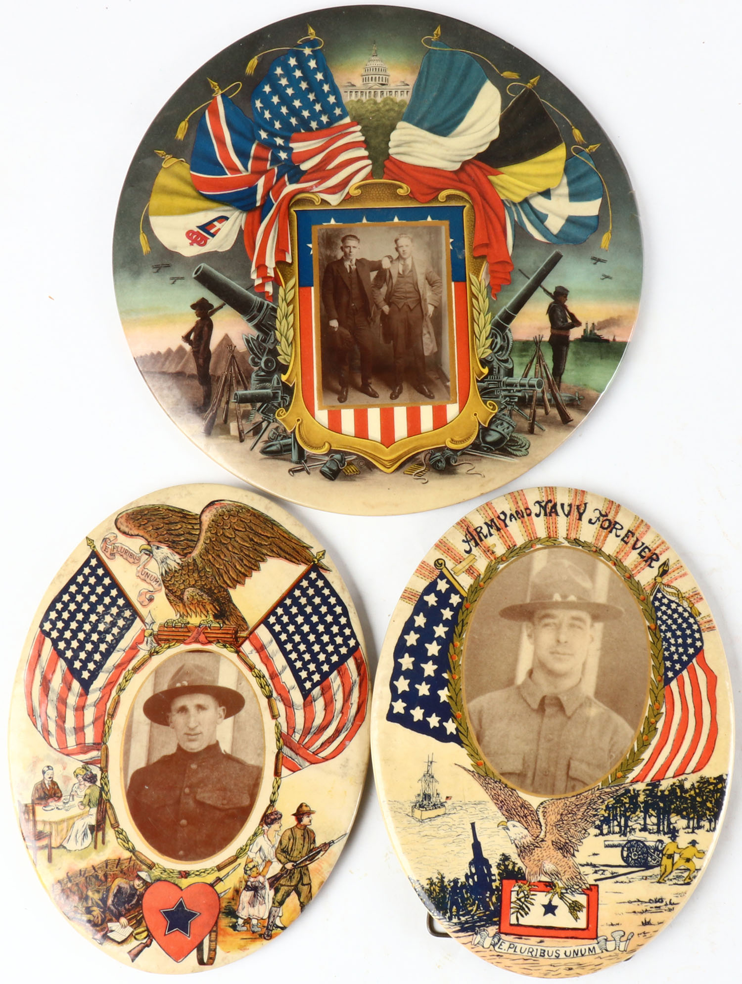 Lot of 3 antique military plaques. Grade: Excellent - Value: 30 to 250