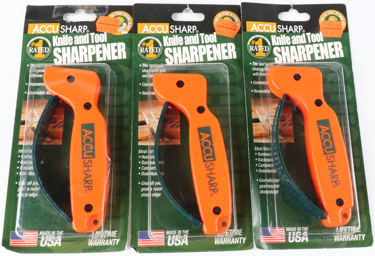 Lot of 3, Accu Sharp knife & tool sharpener in original packages. Grade: MINT - Value: 10 to 40