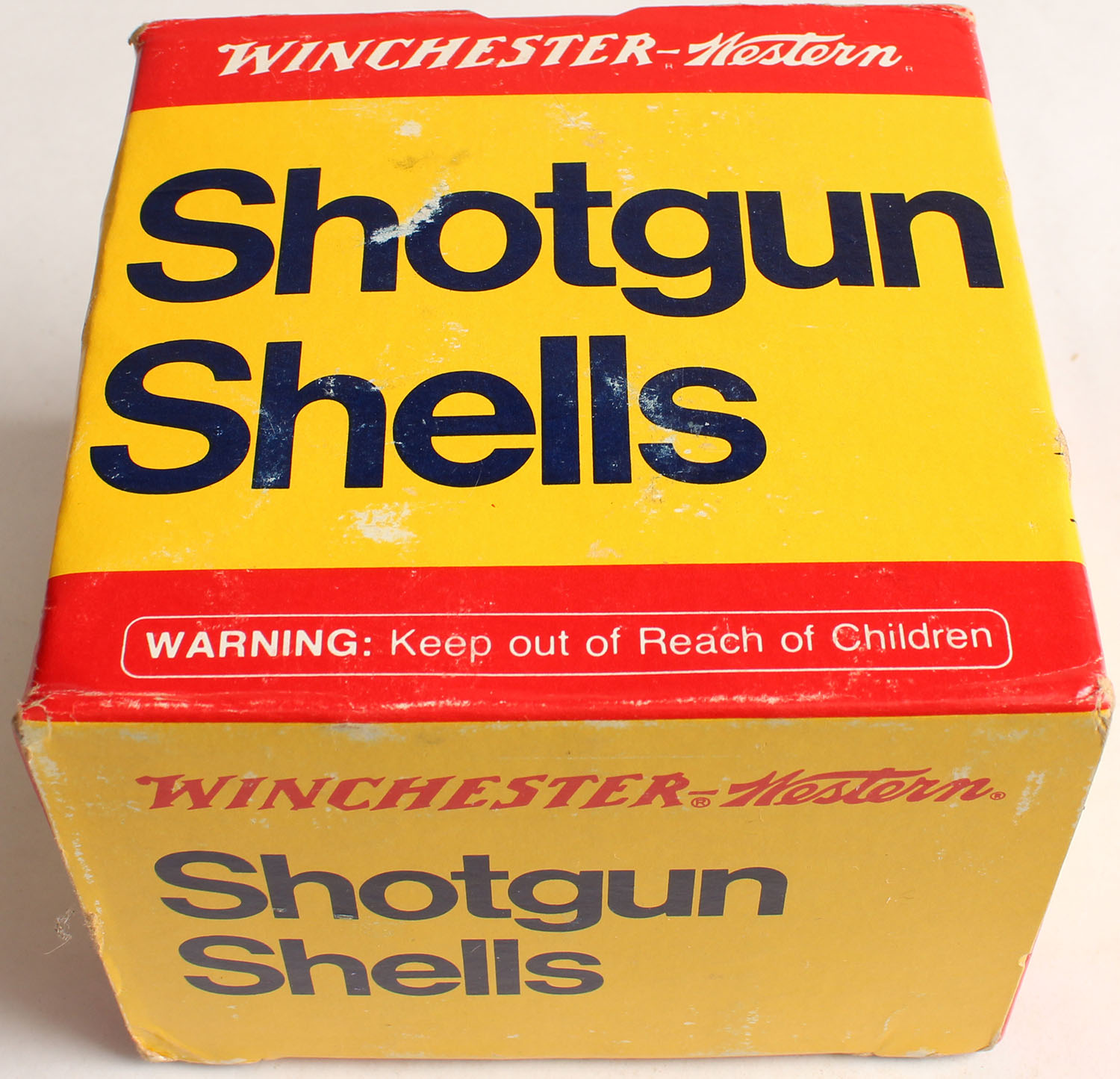 Winchester-Western, 10ga., 3 1/2'', 1pc., Full, shot size 3 Buckshot, multi-colored box, box has shell protrusion with great colors, shells are excellent. Grade: Excellent - Value: 20 to 80