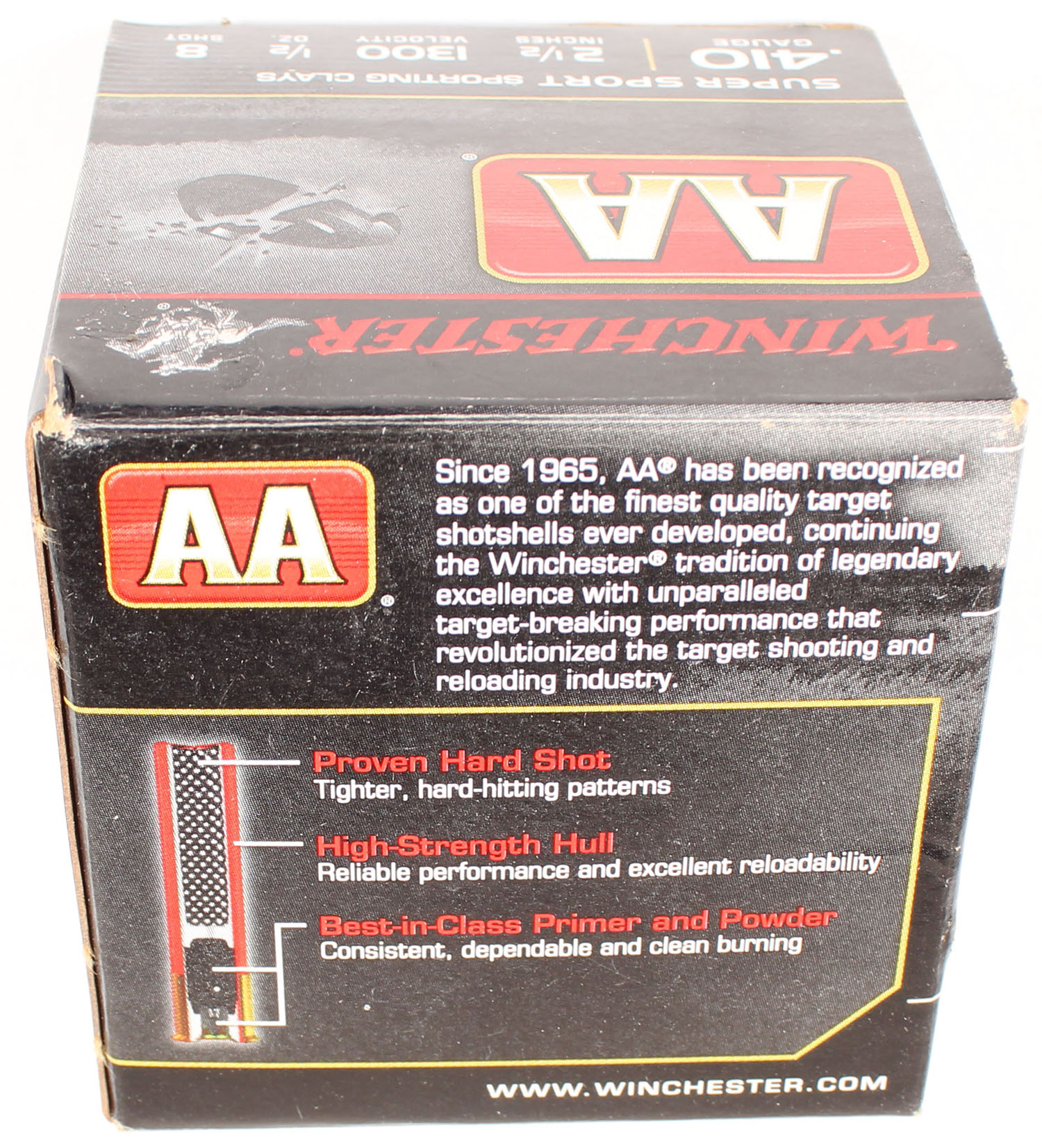 Winchester, AA, Super Sport, 410ga., 2 1/2'', 1pc., Full, shot size 8, multi-colored box, box is very solid with great colors, shells are excellent. Grade: Excellent ++ - Value: 10 to 30