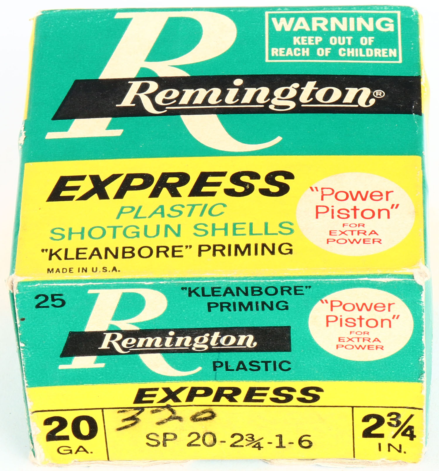 Remington Express, 20ga., 2 3/4'', 1pc., Full, shot size 6, multi-colored box, box is solid with very nice colors, shells are excellent. Grade: Very Good ++ - Value: 10 to 30