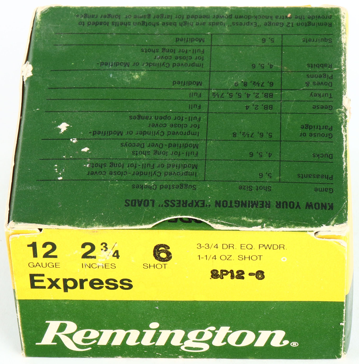 Remington Express, 12ga., 2 3/4'', 1pc., Full, shot size 6, multi-colored box, box is solid with very nice colors, shells are excellent. Grade: Very Good ++ - Value: 10 to 30