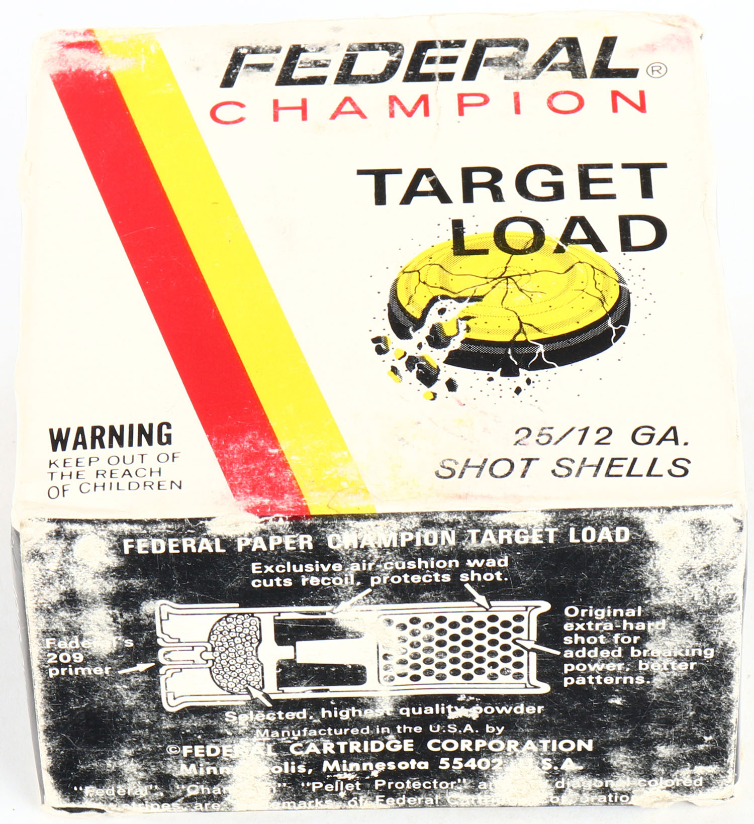 Federal, Champion, 12ga., 1pc., Full, shot size 8, multi-colored box, box is solid, shells are excellent. Grade: Very Good + - Value: 10 to 30
