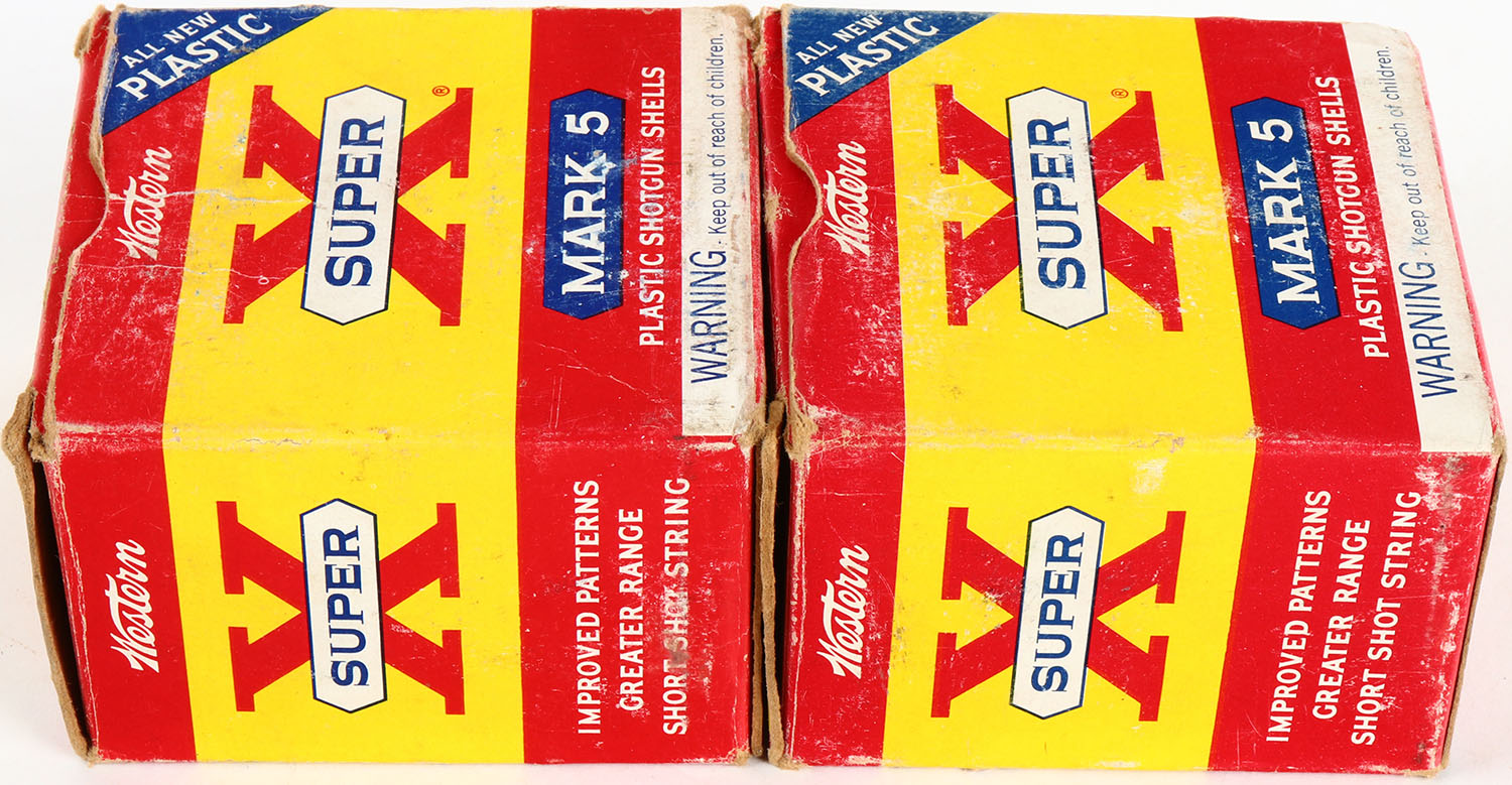 Lot of 2 Western, 12ga., 1pc., Appears partial, shot size 4, multi-colored box. Grade: Very Good ++ - Value: 6 to 30