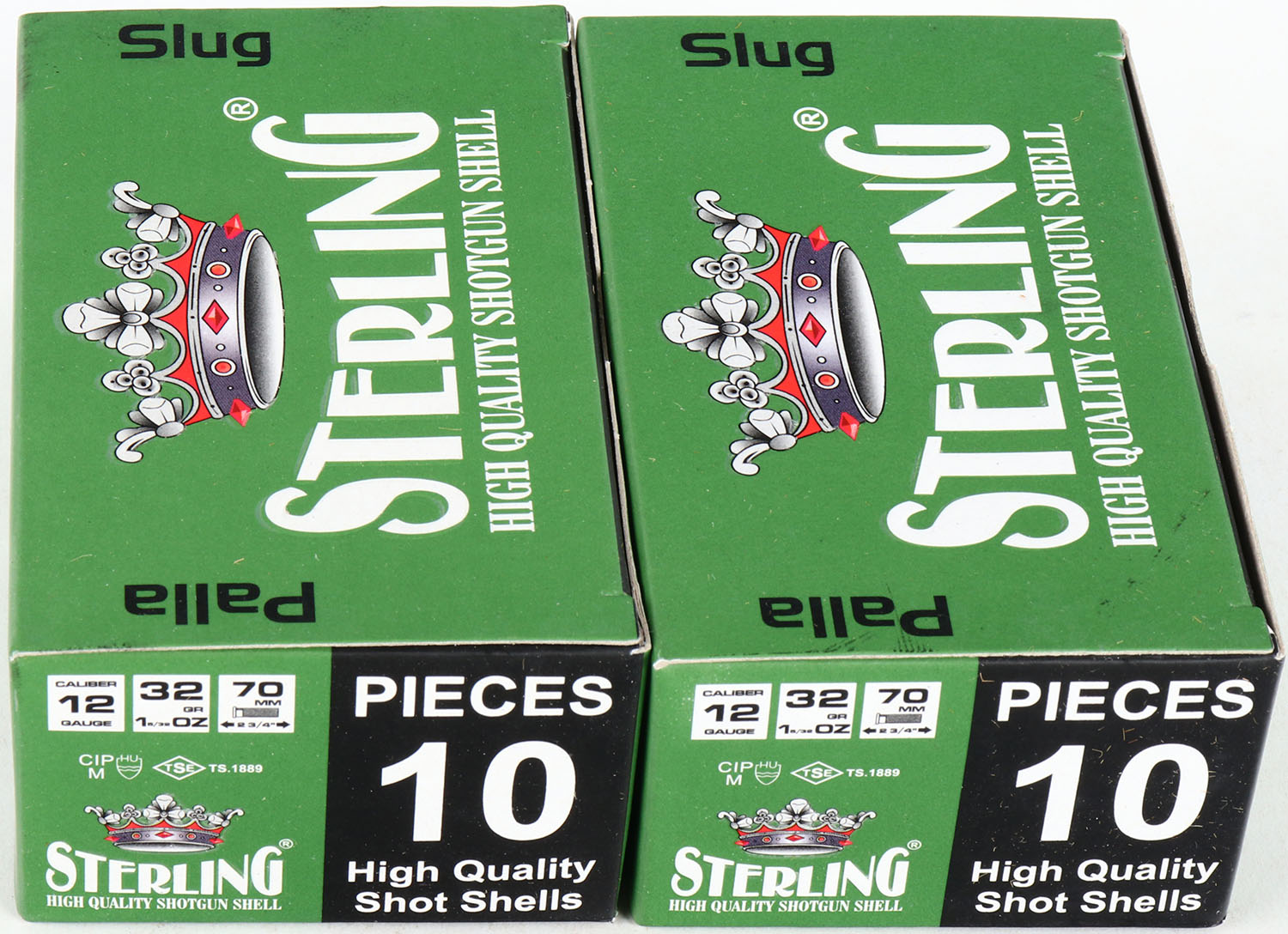 Lot of 2 Sterling, 12ga., 1pc., Full, shot size slug, multi-colored box. Grade: MINT - Value: 10 to 30