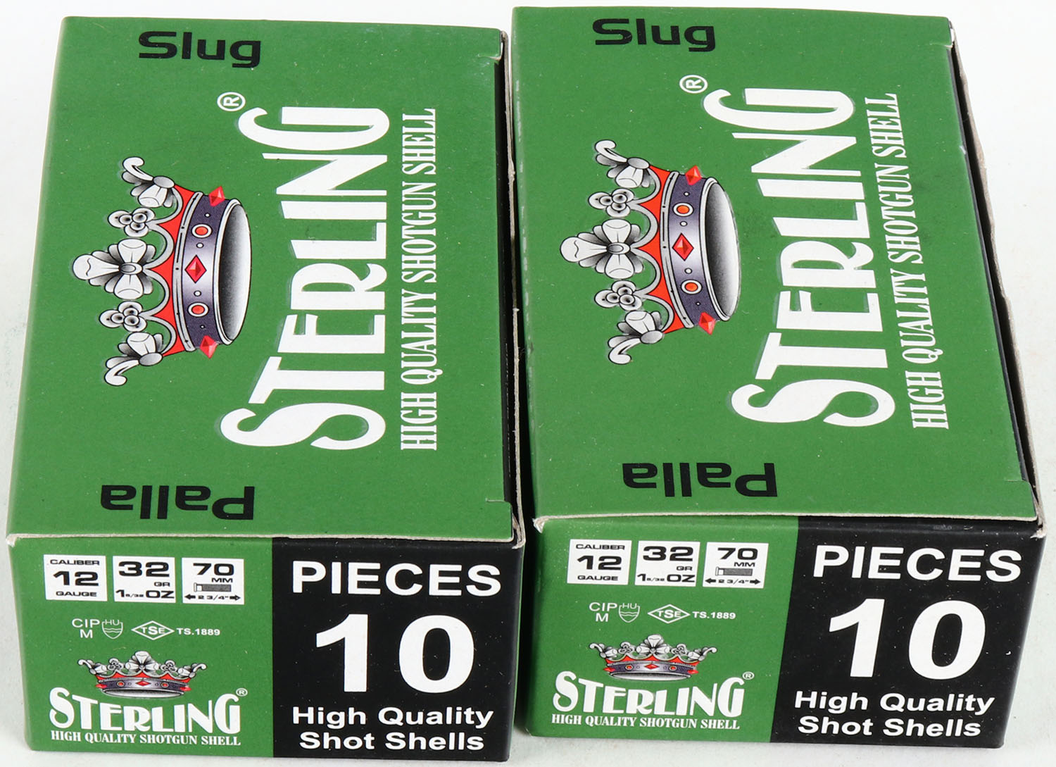 Lot of 2 Sterling, 12ga., 1pc., Full, shot size slug, multi-colored box. Grade: MINT - Value: 10 to 30
