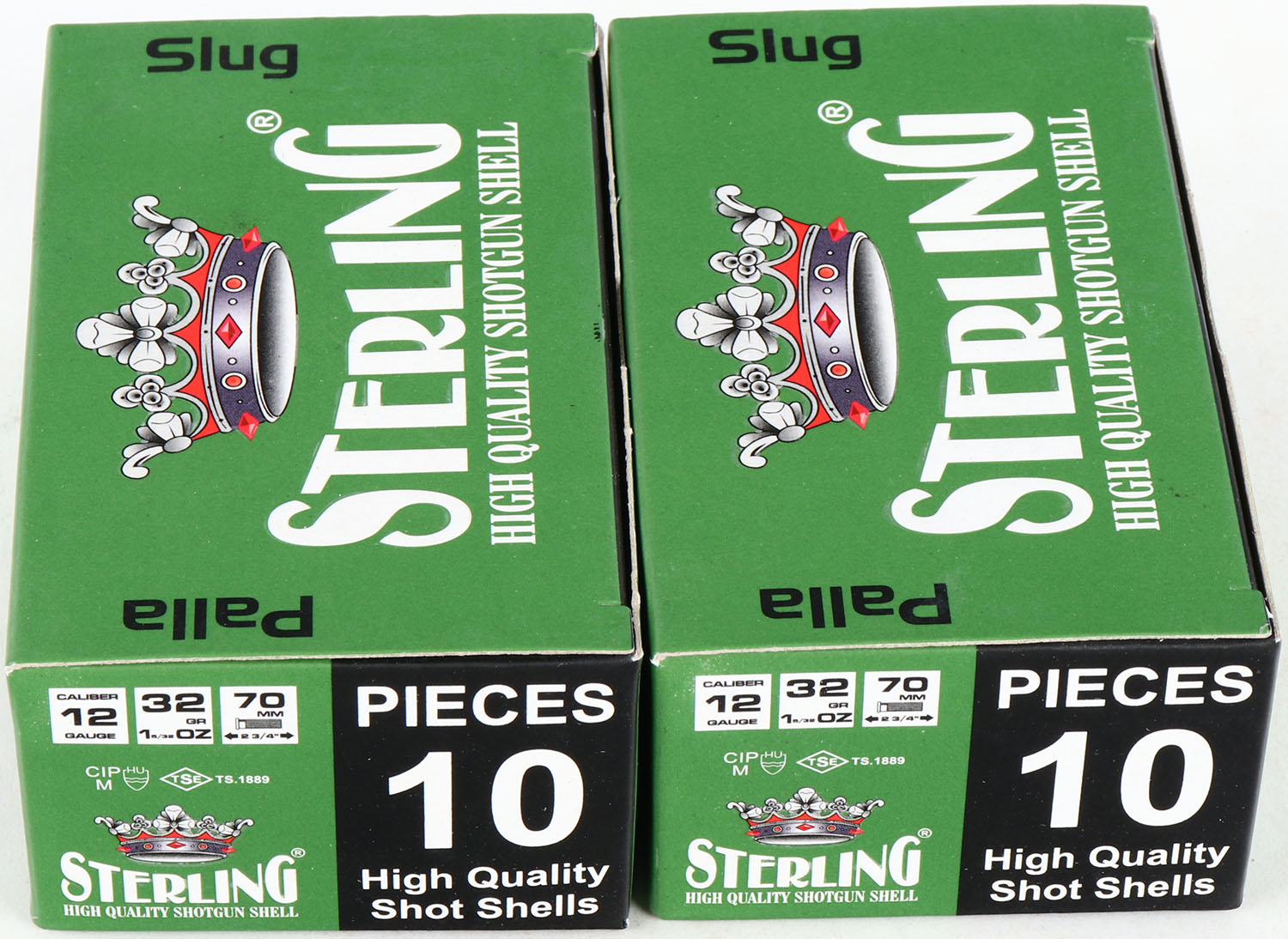 Lot of 2 Sterling, 12ga., 1pc., Full, shot size slug, multi-colored box. Grade: MINT - Value: 10 to 30