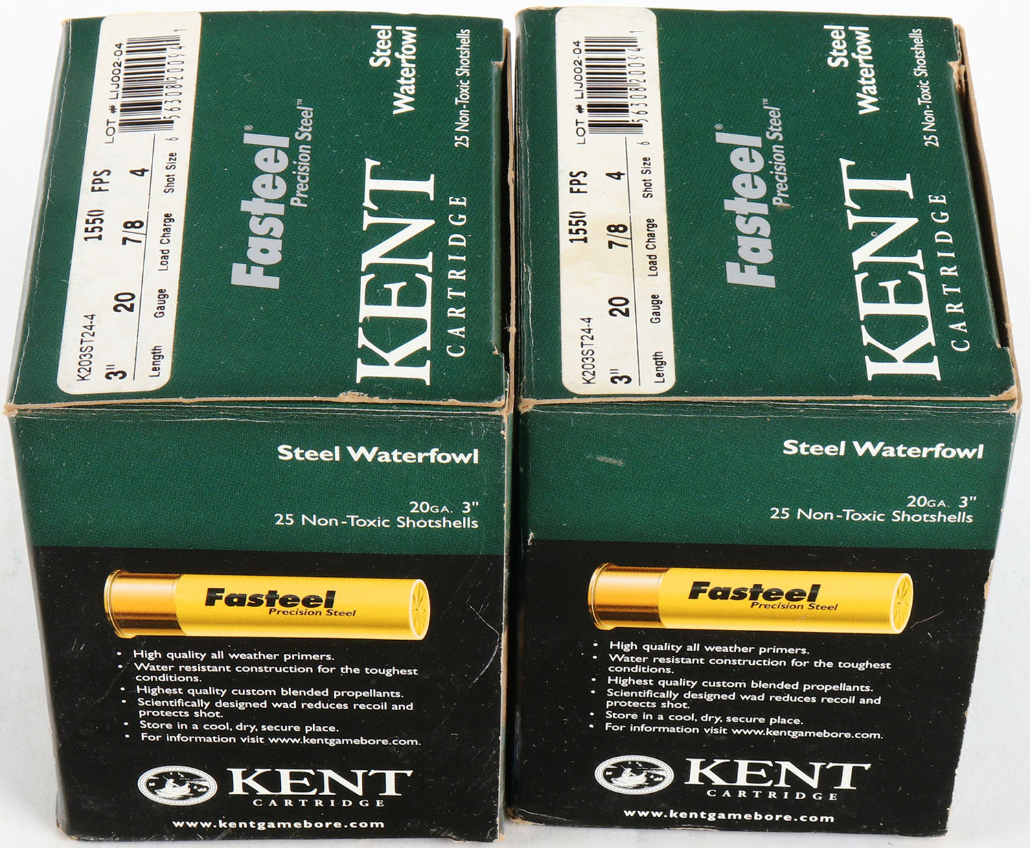 Lot of 2 Kent, 20ga., 1pc., Full, shot size 4, 3'', multi-colored box. Grade: MINT - Value: 10 to 30