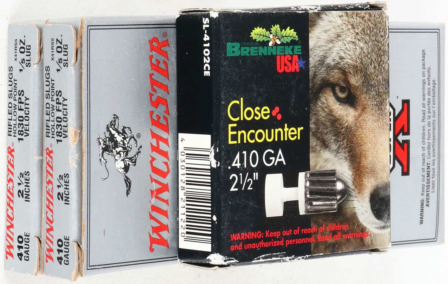 | Lot of 5 410ga. Boxes, 1pc., Partial, multi-colored box. Grade: ...