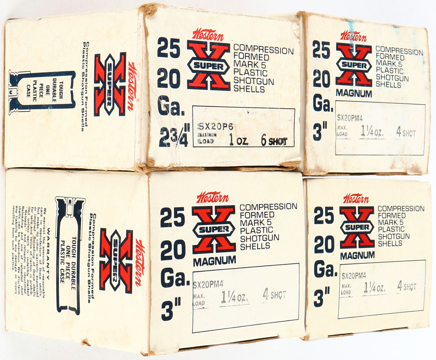| Lot of 4, Western, 20ga., Appears Full, Shotshell Boxes. Grade:...