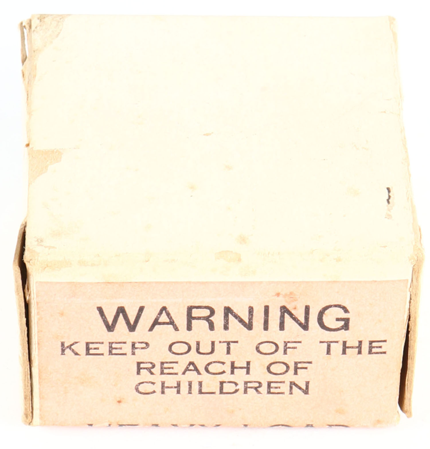 Scientific Products Corp., .22 Caliber Heavy Load, Full, 1pc. White box with salmon label, box is solid with very good color, some age soiling, minor corner wear, edges are mostly sharp, end flaps are solid, ammo is minty. Grade: Excellent - Value: 10 to 60