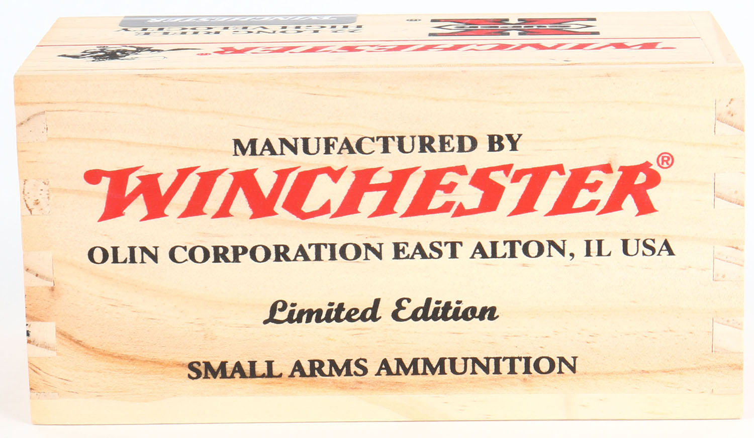 Winchester, Super X, .22 Long Rifle High Velocity, FULL & SEALED, 2pc. Wood box with red & black printing, box is MINT with minty color. Grade: MINT - Value: 30 to 90